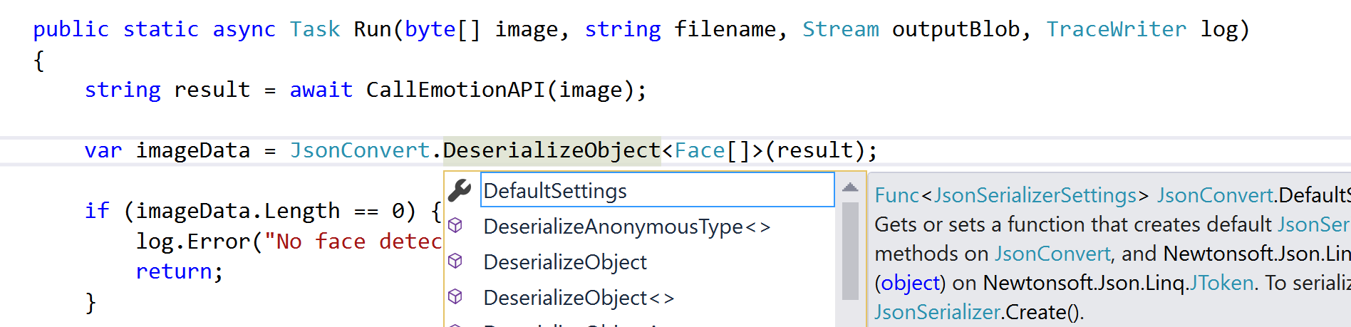 With our new Azure Functions runtime support for precompiled functions, you can now use familiar Visual Studio features such IntelliSense and unit testing. These features were among the top requests after we launched the preview Visual Studio Tools for Azure Functions. This also enables an improved development workflow for customers who feel that that class libraries are a better fit for their application.