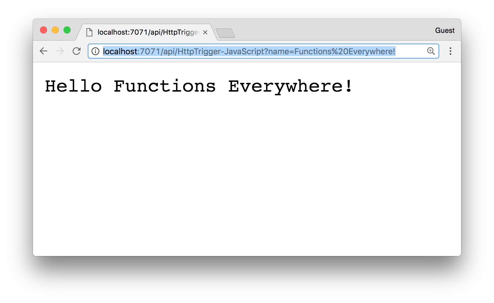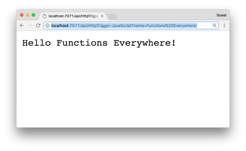 http://localhost:7071/api/HttpTriggerJavaScript?name=Functions%20Everywhere!