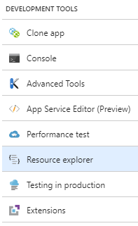 - In the Azure Portal, select “Resource explorer” in your App Service app’s menu.