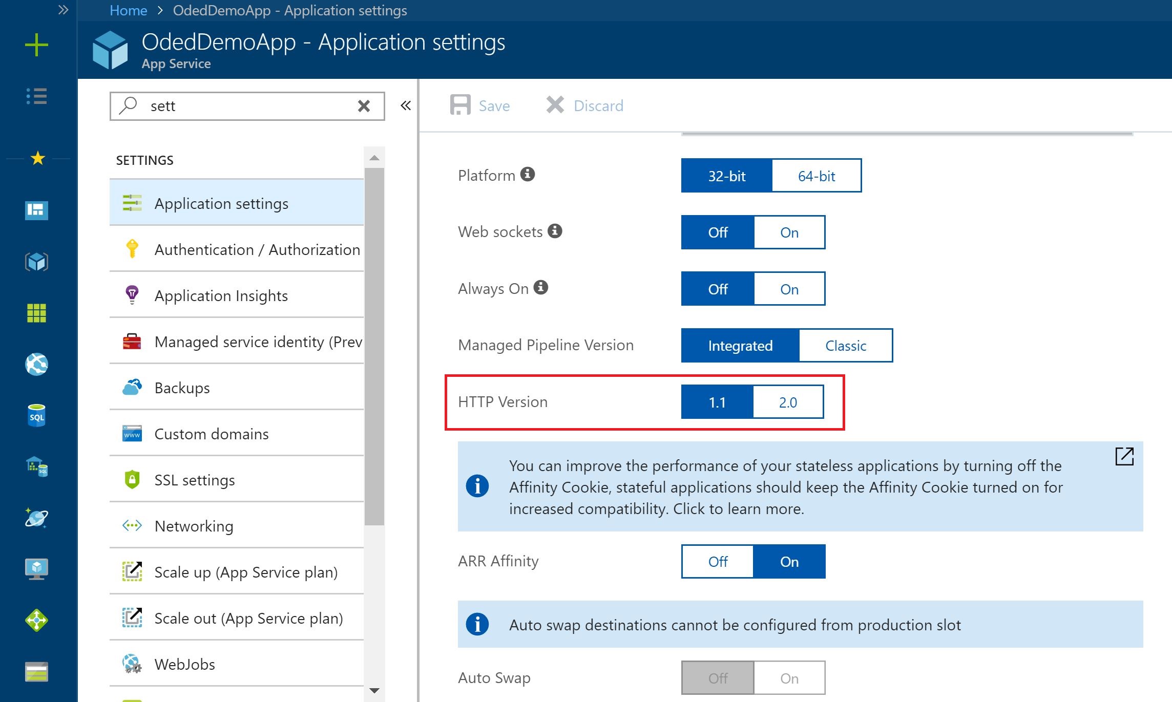 *.azurewebsites.net domain. Regardless of which approach you choose, your apps will need to run over SSL to enjoy the benefits of HTTP/2 with modern browsers.