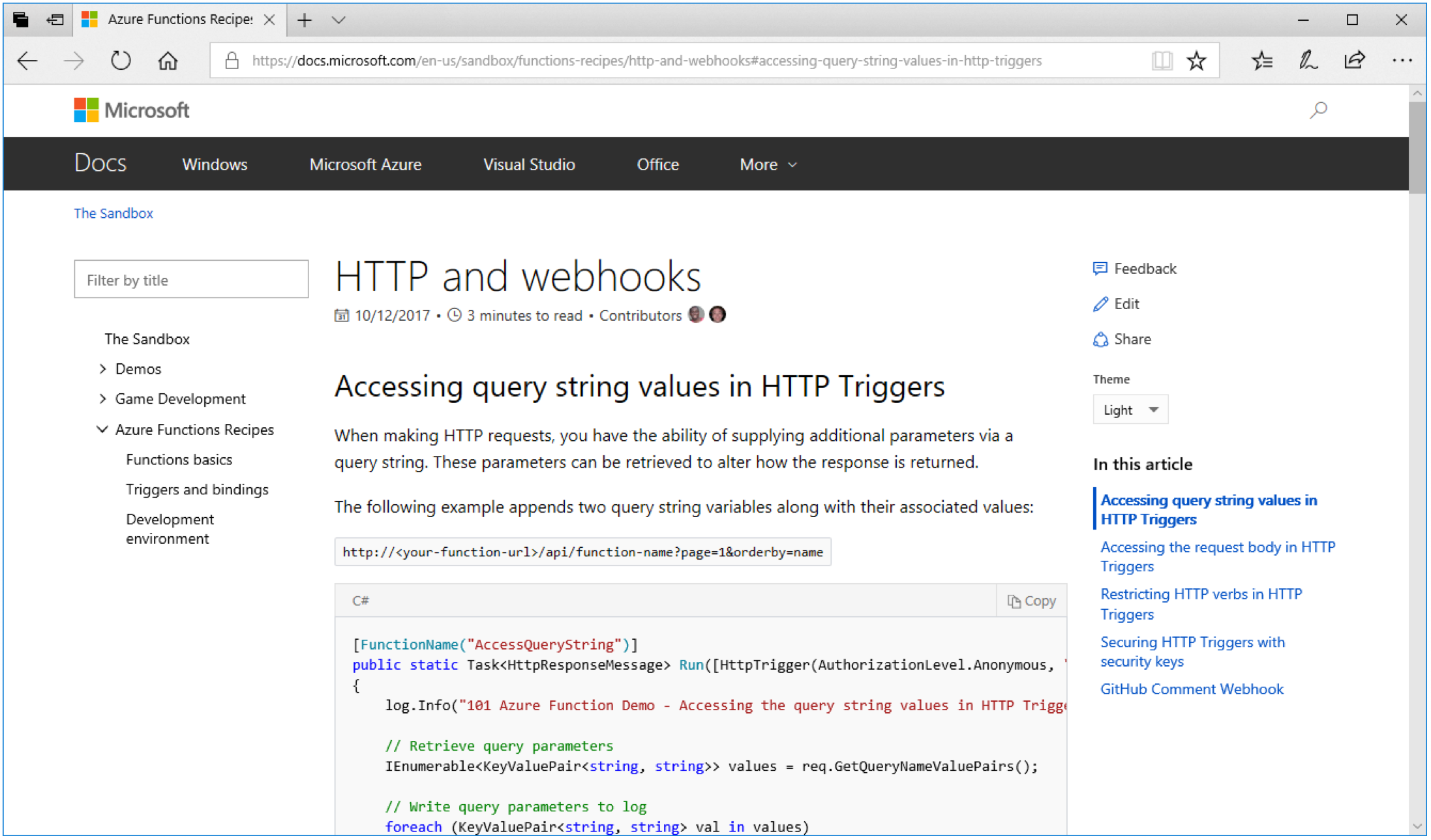We're only getting started. We'll be expanding the collection with even more recipes (we just added 11 new ones on Durable Functions). We launched with recipes in C#, but we are starting to add other languages such as JavaScript, Java, F#, Python, and more.