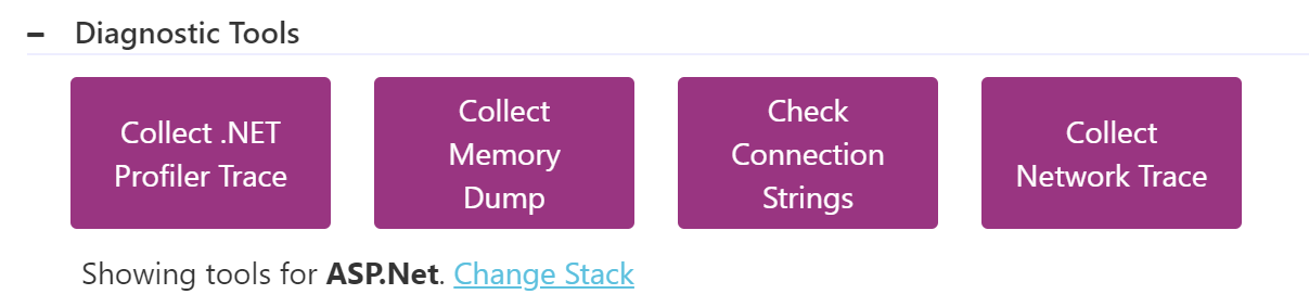 Diagnostic Tools (a new parent problem category). These Diagnostic Tools are stack specific and are here to help you dive deeper in investigating issues related to your