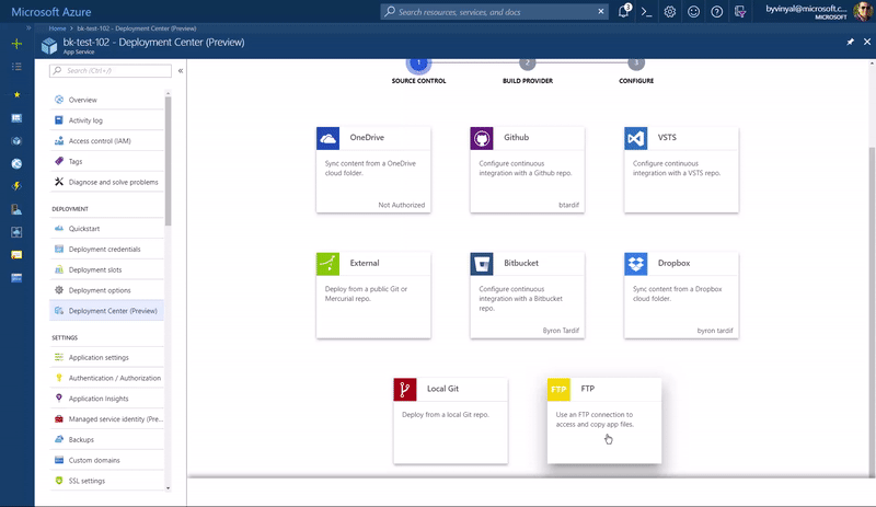 Deployment Center is a centralized overview for all of the deployment options available to you. It also provides a guided experience to set up your deployments.