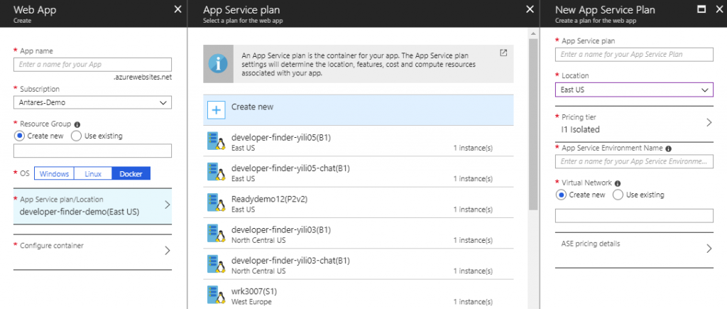 Remember that even though Windows and Linux web apps can be in the same App Service Environment, Windows and Linux web apps have to be in separate App Service Plans. With Linux on ASE, you will be using the Isolated SKU with Dv2 VMs and additional scaling capabilities (up to 100 total App Service plan instances, between Windows and Linux, in one ASE).