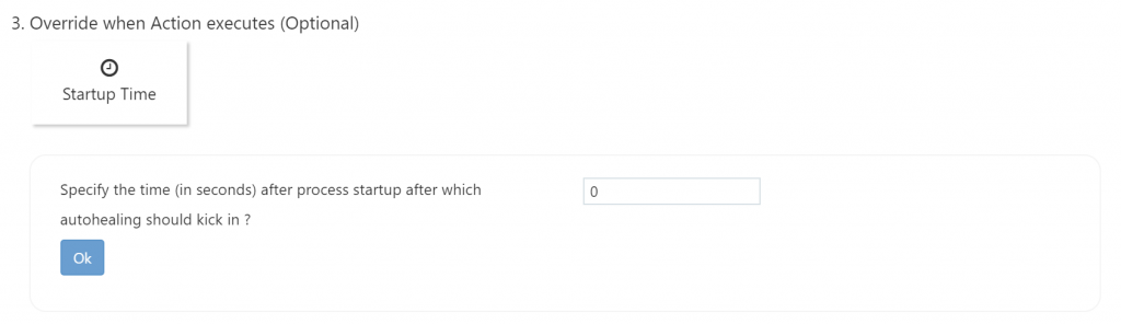 Sometimes when an app has a long startup time, depending on the mitigation rule conditions that are set, it may kick off the mitigation action during app startup, which is not the intended use case. By modifying the startup time, you can specify how much time the mitigation rule should wait after the process startup before the mitigation rule kicks off.