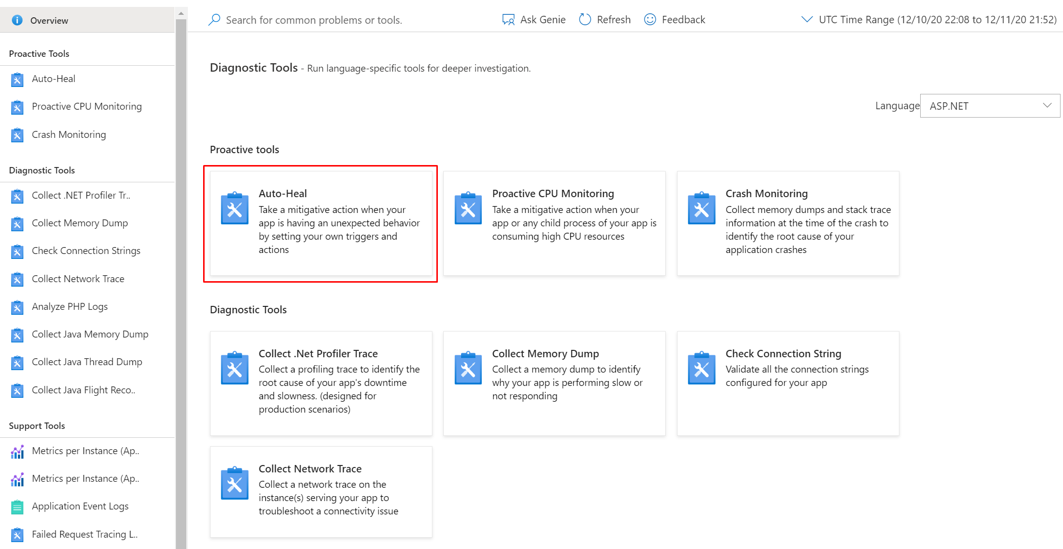 Today, we’re excited to announce our new Auto Healing experience in App Service Diagnostics. With our new